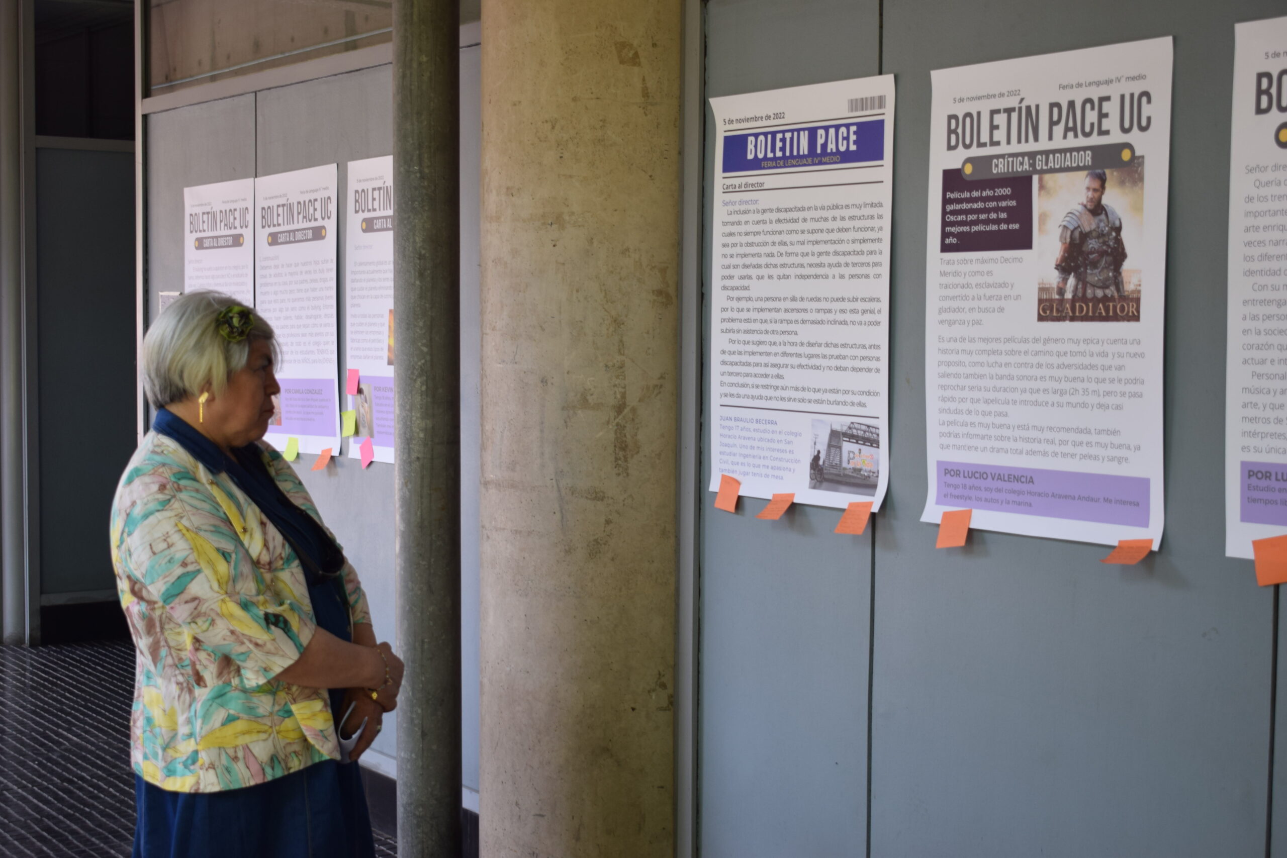 Además, directores, docentes, estudiantes y representantes de Liceos PACE UC recorrieron los pasillos de la Facultad y compartieron con los creadores de las obras. Los formatos fueron variados y creativos: revistas, infografías, cuentos, artículos de opinión, entre otros.