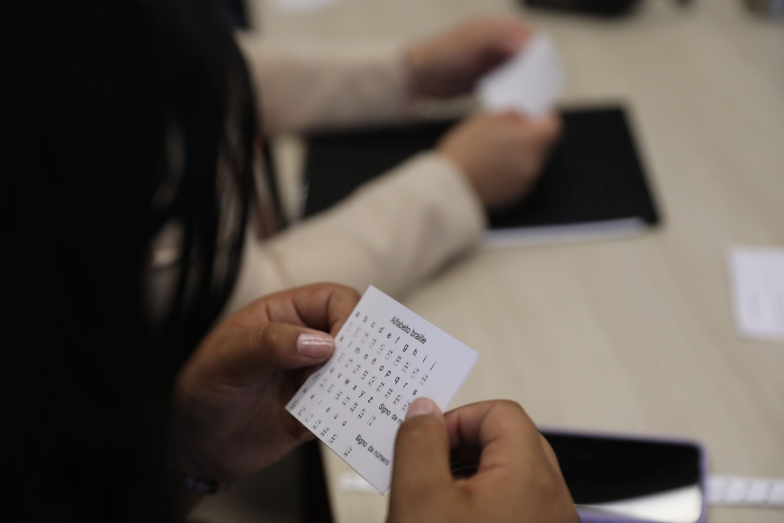 Para ello, se desarrollaron talleres de acercamiento al lenguaje de señas y al sistema Braille, sobre cómo asistir a personas con discapacidad visual y en el manejo de silla de ruedas, para finalizar con un espacio de conversación que contó con la participación de estudiantes que forman parte de PIANE, además de autoridades de la Dirección de Inclusión.