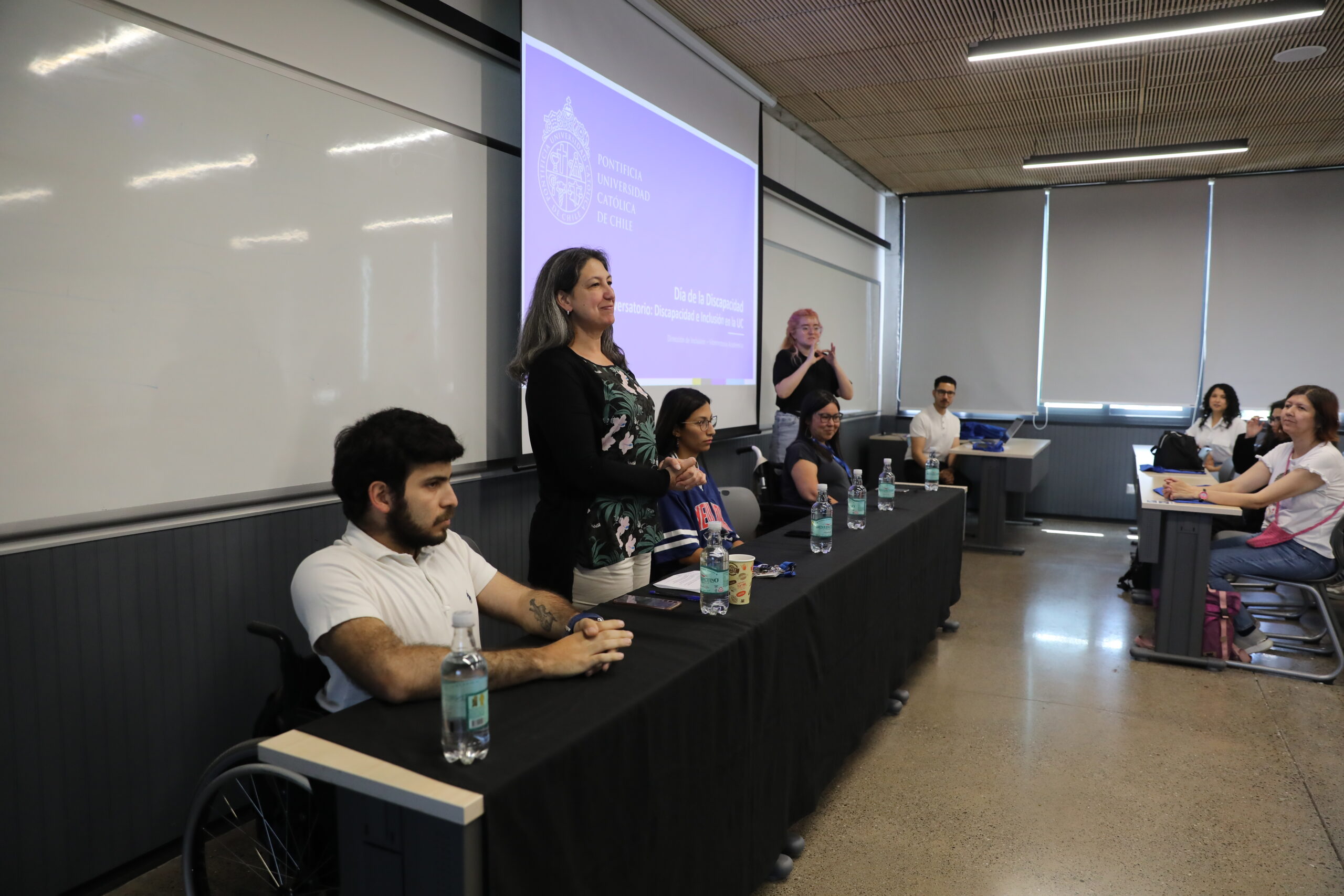 Natalia, por su parte, es una persona sorda y cursa tercer año de Pedagogía en Educación Física y Salud. Ha debido sobrellevar su vida universitaria con una discapacidad que es invisible para muchos, pero que, a pesar de eso, ha encontrado un apoyo importante en la comunidad UC. “En el ámbito social, me he dado cuenta que mis compañeros se han interesado en aprender lengua de señas. Es genial ver el acercamiento que hay, el compartir es importante. El proceso sí ha sido difícil, algunos cursos han sido difíciles para mí porque debo prestar atención al intérprete mientras el PPT va avanzando. Pero, en general, el relacionamiento y comunicación con mis compañeros y profesores ha sido buena. Me emociona ver este avance, el interés que existe por prestar apoyo, me preguntan si tengo dudas, me invitan a actividades, eso ha sido muy bueno”.