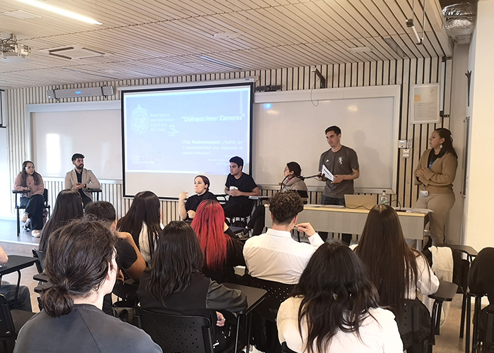 El ciclo de actividades vocacionales inició con los conversatorios “Diálogos Intercarreras”. En estas instancias, estudiantes UC de distintas disciplinas dieron a conocer de qué manera sus disciplinas influyen en temáticas de interés común.