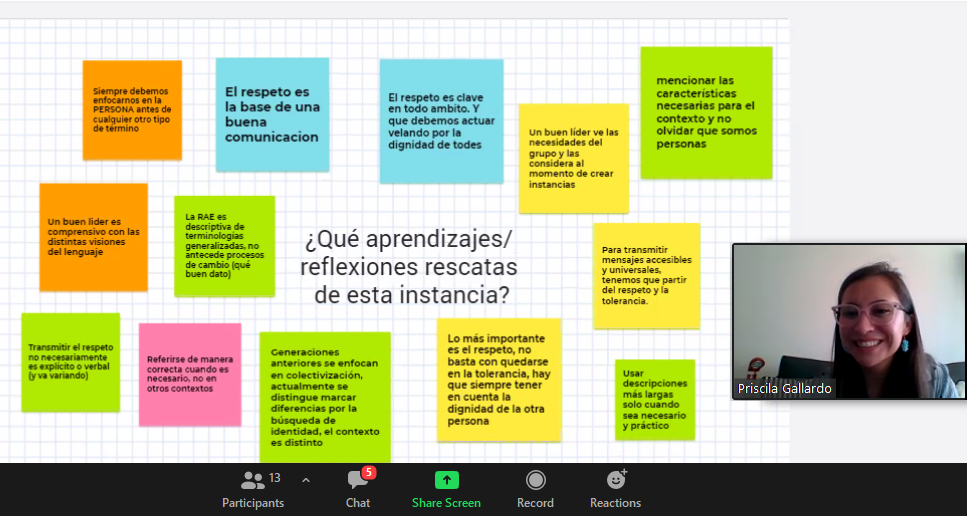 Continuando con el ciclo “Formación, diálogo y promoción de la inclusión desde los y las estudiantes”, este pasado jueves 22 de octubre se llevó a cabo el Segundo Encuentro de Líderes por la inclusión. En esta ocasión, el tema central fue el lenguaje inclusivo.