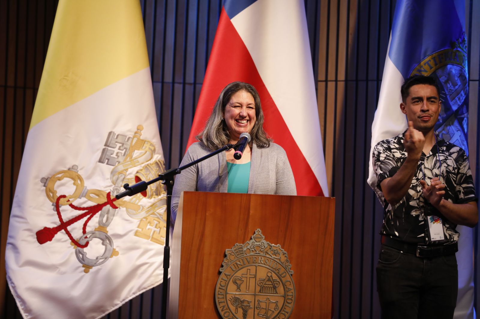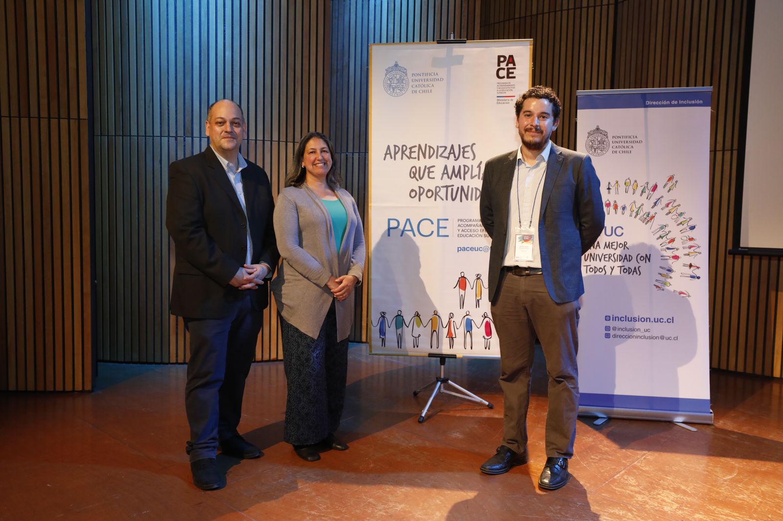 Las palabras de bienvenida estuvieron a cargo de Catalina García, directora de Inclusión de la UC, universidad anfitriona de esta instancia, quien destacó que “nuestra institución siempre ha tenido la convicción de que acciones como estas son necesarias para que aportemos a la equidad en nuestro país. Este fue un proyecto osado, que había que creer en él, ponerlo en marcha y que iba a funcionar dependiendo de quién y cómo hiciéramos lo que teníamos que hacer, también con la mente abierta para ir mejorando constantemente. Diría que fácil no ha sido, en ningún caso, pero realmente vale la pena y hoy día vemos a muchos y muchas egresadas, que cuentan su historia, que demuestran que, con apoyos, acompañamientos y también convicción en el trabajo personal se pueden lograr estos sueños que tenemos como país, como personas, como familias”.