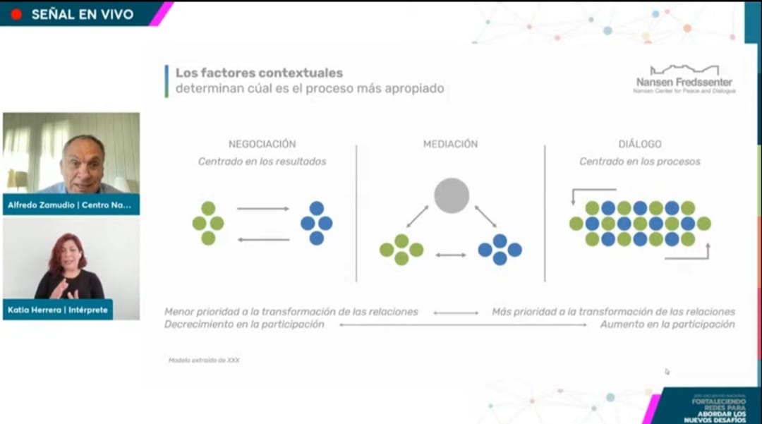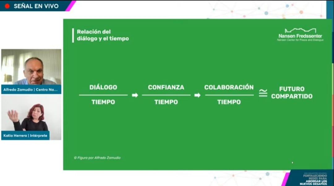 Siguiendo la línea del reconocimiento de la inclusión como unos de los pilares de PACE, Alfredo Zamudio invitó a los y las asistentes a discutir en torno a la creación de espacios de diálogo como el camino central para generar un futuro compartido. En este sentido sintetizó: “El diálogo se logra con un proceso inclusivo, reconociendo lo que nos separa y encontrando aspectos en común para alcanzar el futuro compartido”.