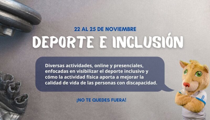 Del 22 al 25 de noviembre, se realizarán actividades para visibilizar cómo el deporte inclusivo y la actividad física aporta a la calidad de vida de las personas con discapacidad.