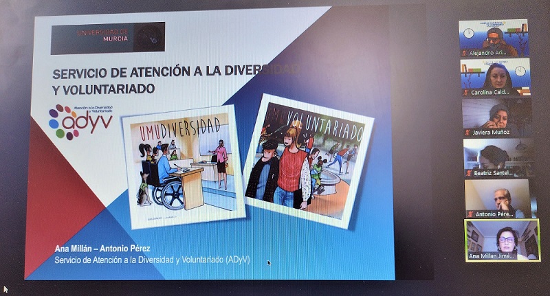 En la instancia, participaron profesionales del Servicio de Atención a la Diversidad y Voluntariado de la Universidad de Murcia, España, y profesionales de la Dirección de Inclusión en el marco del proyecto InES, PUC 1811: