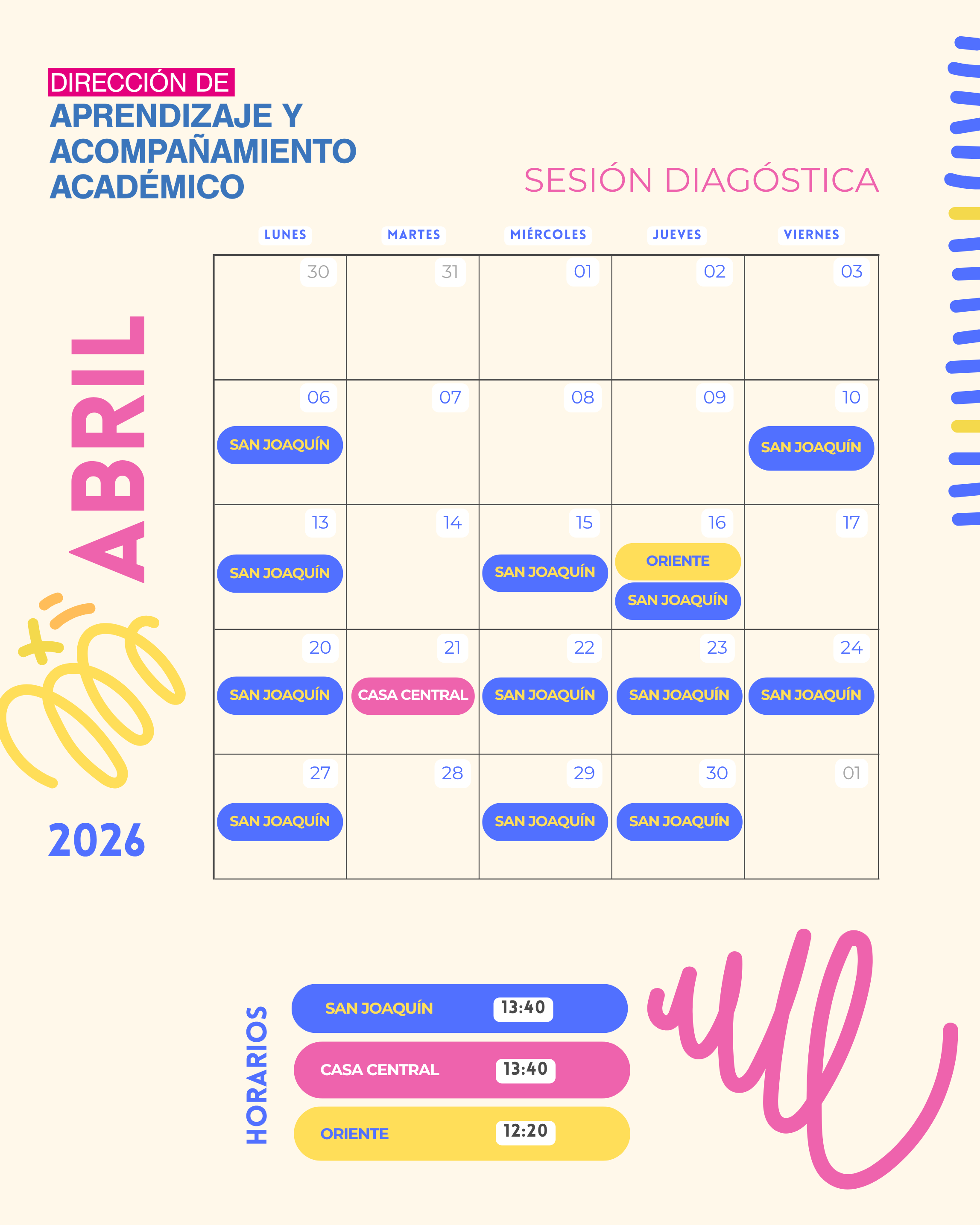 La Sesión Diagnóstica es una intervención que permite al estudiante comprender los procesos fundamentales del aprendizaje y el estudio académico, así como conocer los servicios y oportunidades de desarrollo académico que les brinda la Unidad de Asesoría Académica y Estrategias de Aprendizaje.